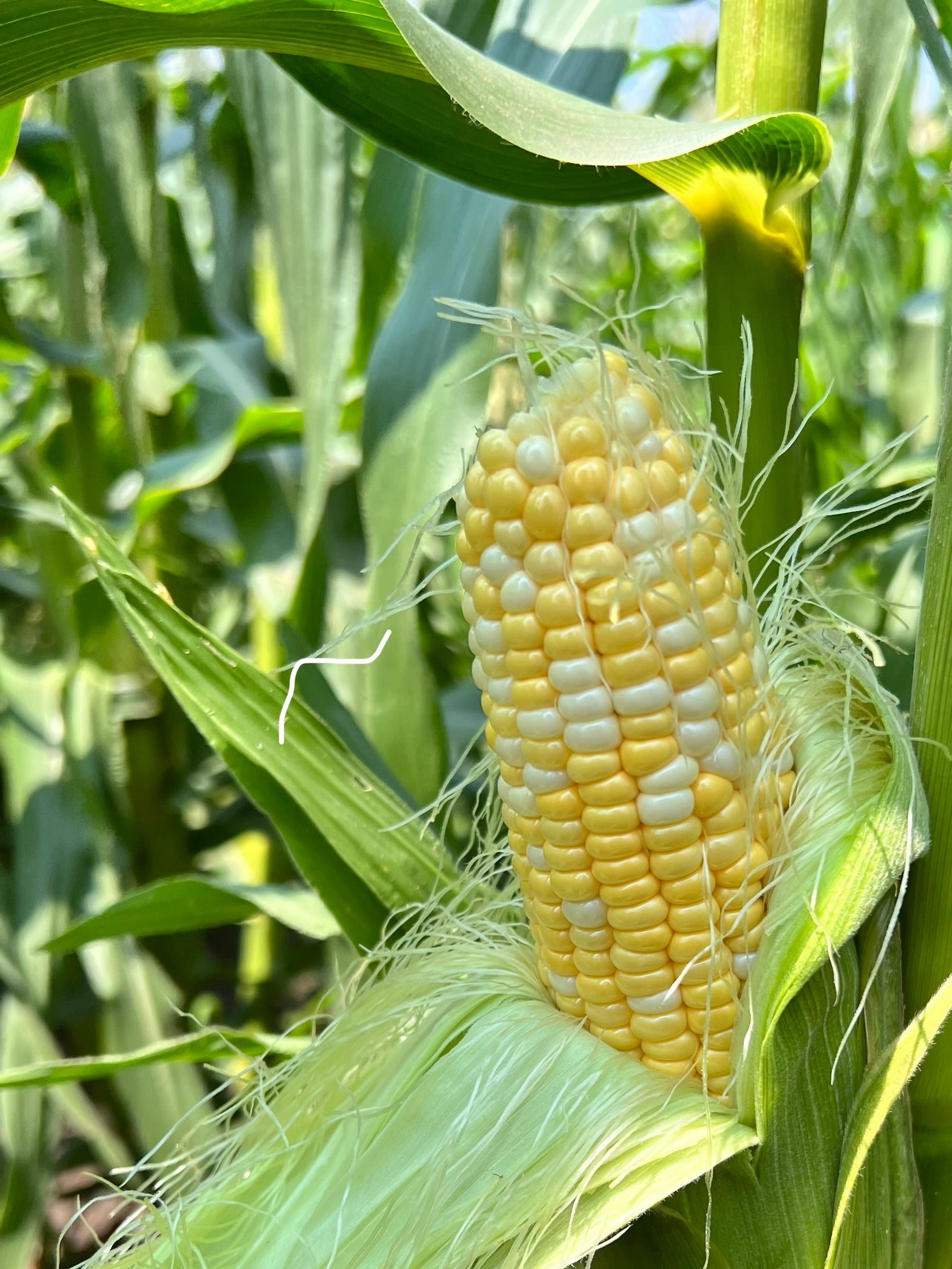 Maíz dulce fresco cultivado localmente y cosechado en su punto máximo de maduración.
